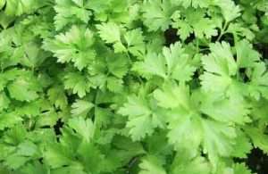 El perejil, de nombre científico Petroselinum crispus, es una hierba aromática que crece hasta 1.5 metros de altura.